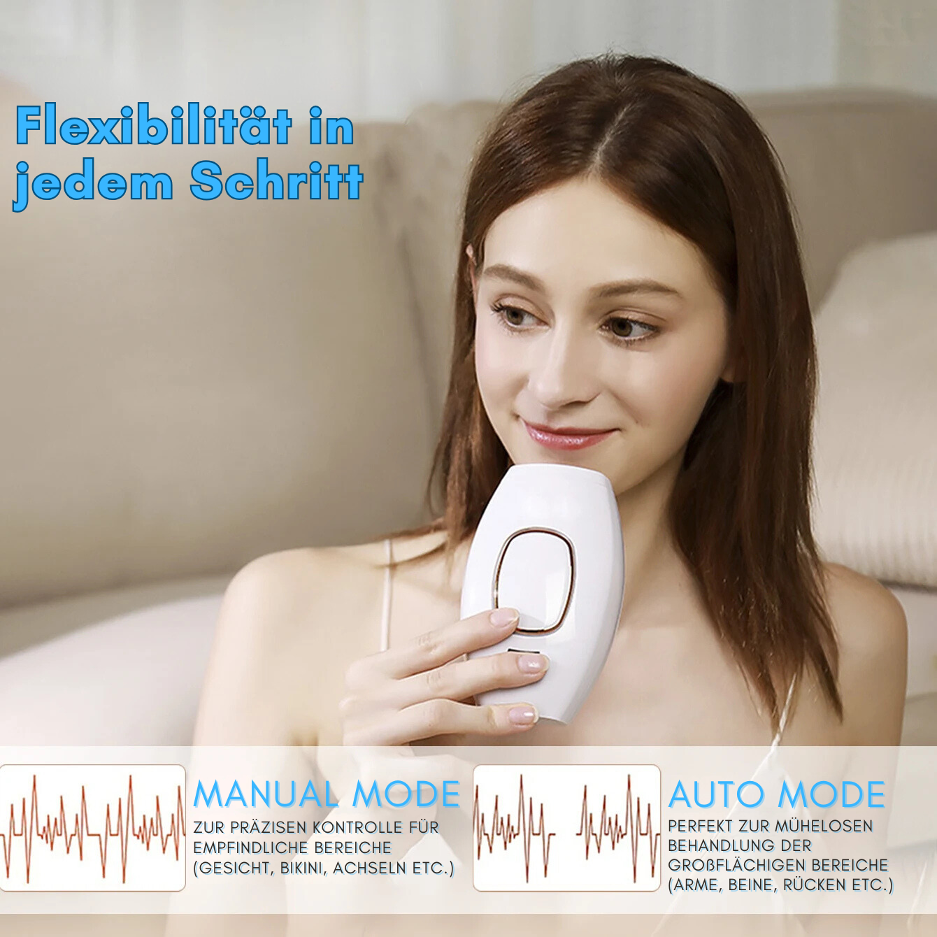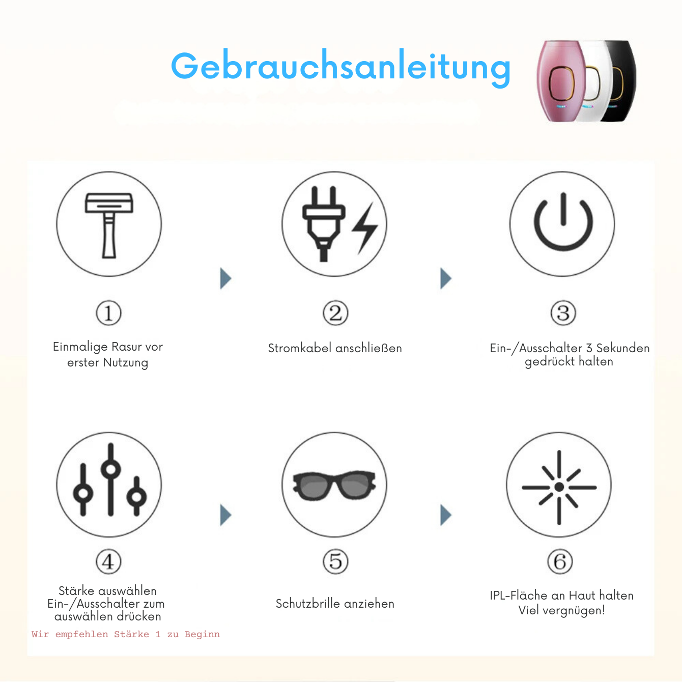 - Schmerzfreie Anwendung: Im Gegensatz zu Waxing oder Epilieren ist das IPL-Verfahren sanft zur Haut und kann bequem zu Hause angewendet werden.
